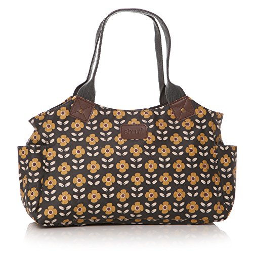 Beautiful Charcoal Grey Flower Print Tote Oilcloth Ladies Tote Fashion Handbag has the following specifications Beautiful Flower Print Oilcloth Ladies Tote Fashion Handbag. Top quality oilcloth material, fully lined in a beautiful grey polka fabric. Colour matching double handles. Top zip opening to main compartment with open wall pocket and one zip pocket, ideal for a mobile. Two side pockets with magnetic fastening Size height 25cm x width 36cm x depth 14cm