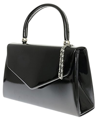 Girly Handbags New Patent Clutch Bag Handbag Small Hard Case Designer Ladies Fashion (Black) has the following specifications Stunning patent clutch bag made of patent faux leather. Fully lined inside and an interior open pocket. The bag comes with silver detachable chain strap. Magnetic snap closure and silver hardware. Dimensions: W 23, H 15, D 7 cm (W 9, H 6, D 3 inches)