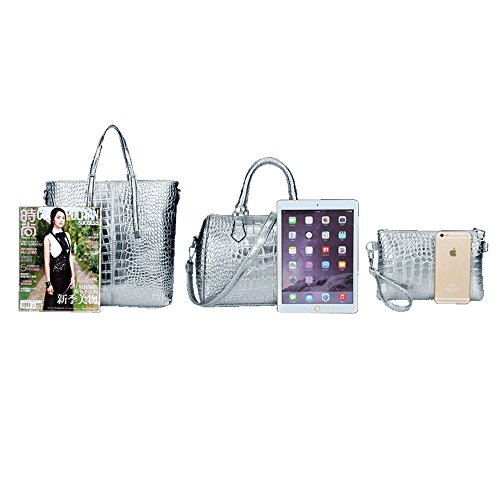 Goodpro Women Handbag Women Bag Crocodile PU Leather 3 Pcs Tote Handbag Purse Set GP102 (Silver) has the following specifications Material: High Quality PU Leather women tote handbags.