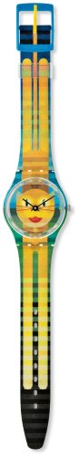 Swatch Unisex Bold Cat 2 Watch has the following specifications The 34mm cat face dial creates a fantastic appearance on this sleek, stylish watch. The multicolor band helps to bring the look together for something that is sure to catch the eye. The analog display features a high quality Swiss Quartz movement which is backed by the full manufacturer warranty. This watch is made of plastic case and (plastic band and is water resistant to 30m.